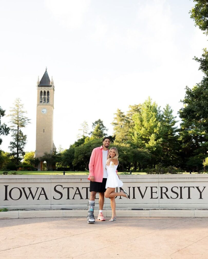 It’s the place the place their love story started, when Haliburton performed for the Iowa State Cyclones and Jones was a part of the cheerleading staff. The 2 met and began relationship whereas learning there in 2019.