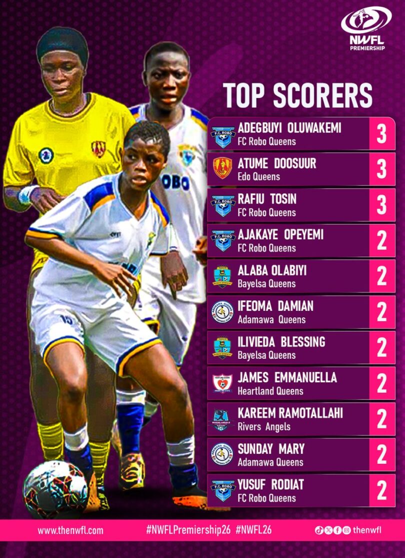 Oluwakemi Adegbuyi and Rafiu Tosin have been in nice type for Robo Queens, every discovering the web thrice, whereas Atume Doosuur has matched their tally with three objectives for Edo Queens. Their early-season consistency has set the tone for what guarantees to be an thrilling goalscoring battle.