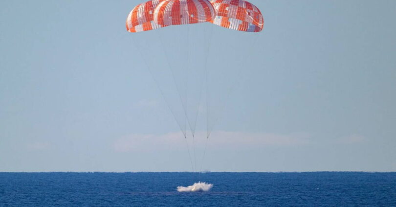 During re-entry, their Orion capsule was expected to hit the atmosphere at around 24,000mph (38,625kph), or about 32 times the speed of sound.