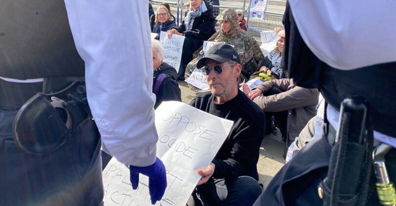 Del Naja, also known as 3D, sat among hundreds of fellow demonstrators in Trafalgar Square on Saturday afternoon with a sign that read “I Oppose Genocide, I Support Palestine Action”.