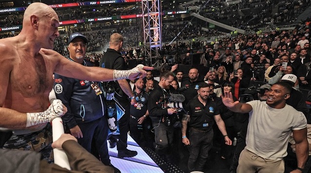 Joshua didn’t accept Fury’s invitation to join him in the ring and said there was no deal for them to fight.