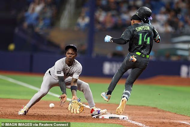In what initially appeared to be a lucky break for New York, Tampa’s Jonathan Aranda hit a one-hopper towards Chisholm, who could have turned an inning-ending double play. Instead, Chisholm bobbled the ball, whiffed on a tag and rather than trying to get the force out at second, fired to first base instead.