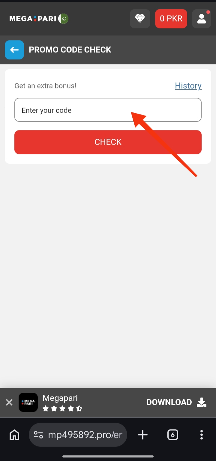How to use Megapari PK promo code bonus