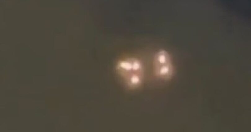 Images were captured on April 8, showing a silent triangle of glowing lights moving in formation before splitting apart mid-flight.
