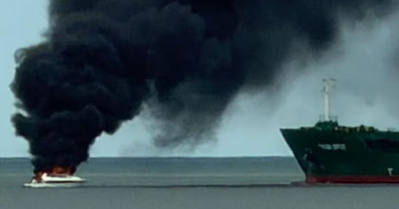 The fire was reported extinguished shortly after 5pm, and the vessel subsequently sank.