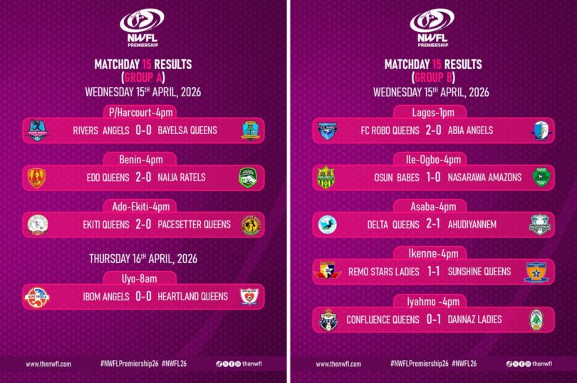 Late Drama and Crucial Wins Shape NWFL Matchday 15. Matchday 15 of the Nigeria Women Football League delivered a mix of late drama, crucial victories, and tightly contested fixtures as teams intensified their push for Super Six qualification and survival.