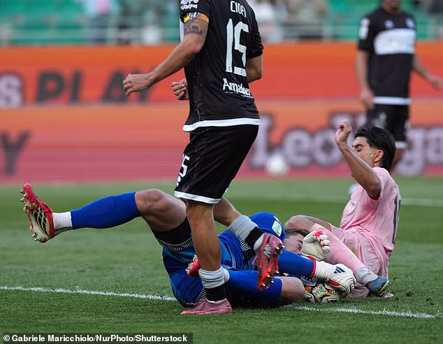 It was the fifth jumper that caused the most horrifying scenes, though, as he flew straight into the field goal net cable, where his parachute immediately became tangled.