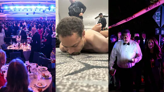 - The disruption came just as the dinner was getting underway. Attendees were eating a spring pea and burrata salad when armed security rushed into the ballroom and shouted for people to get down, an AP report detailed.