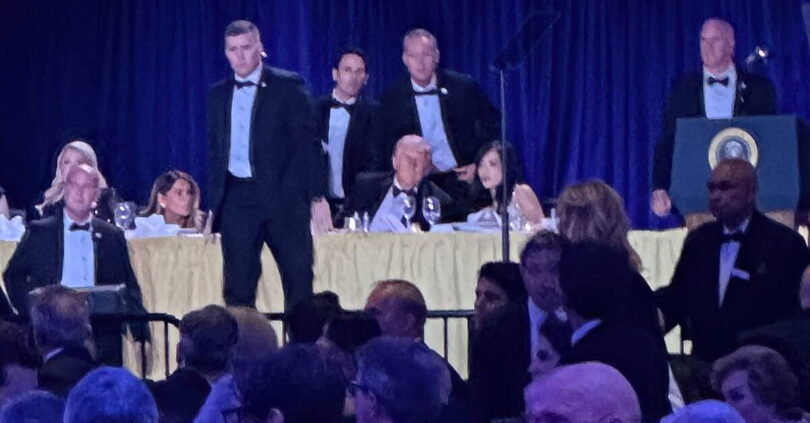 Inside the ballroom, guests scurried for cover at the sound of shots while Secret Service agents, including the heavily-armed counter-assault team, swarmed the stage after the incident.