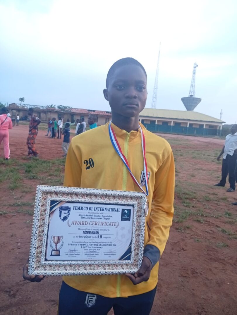 Akanbi Quadri has been named the Best Player of the U13 category at the just concluded Femmco Football Championship 2026, following a series of outstanding performances that defined his team’s journey to the final.